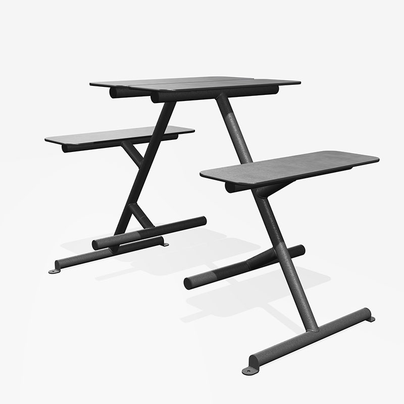 Die Möbelserie in einer hohen und einer niedrigen Version erhältlich. Darüber hinaus ist die niedrige Version an beiden Enden des Tisches rollstuhlgerecht.